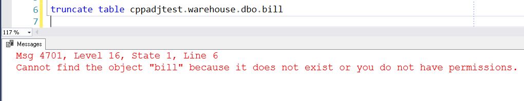 Msg 4701, Level 16, State 1, Line 6