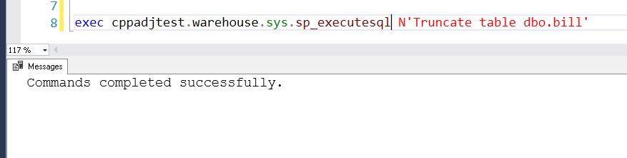 To get around this error, you can either change the command to a DELETE or use dynamic SQL by using SP_EXECUTESQL. I do not want to use a DELETE command, because I have millions of rows to delete and that could take a long time. I just want to get rid of all of the rows in the table as quickly as possible.
