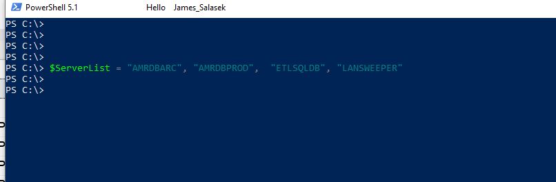 $ServerList = "AMRDBARC", "AMRDBPROD", "ETLSQLDB", "LANSWEEPER"
