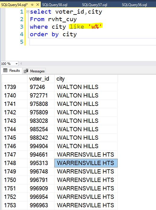 Most people know how to do a wildcard search where you provide the first letter or letters of what you are searching for. Below, I am searching for any city that starts with the letter W.
