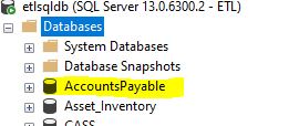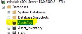 The next day they say the database name needs to be changed to AcctsPay. Ok you can right click the database name and choose rename and change the name. You need to be sure there are no connections active on the database or you will not be able to change the name.
