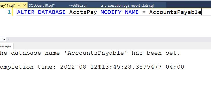 ALTER DATABASE AcctsPay MODIFY NAME = AccountsPayable