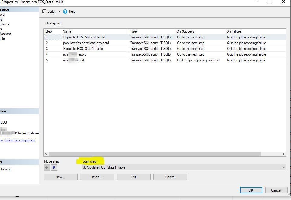 This job originally had 3 steps, and I added two new steps 1 and 2. Everything looks good, so I click OK.